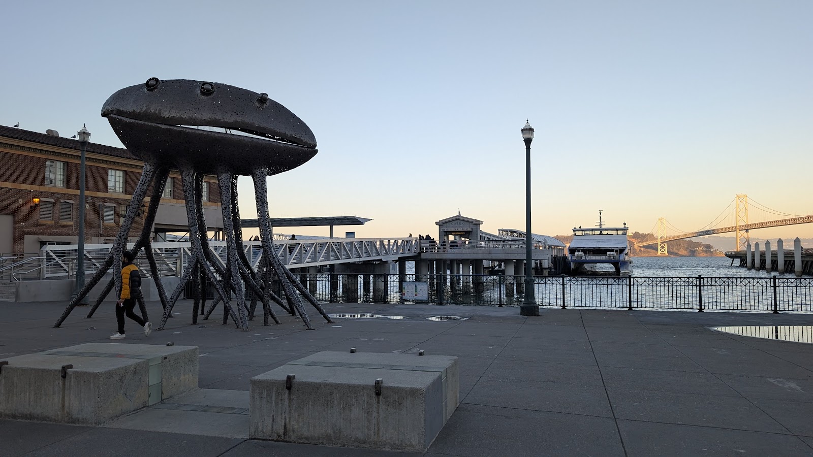 Waterfront park with a promenade & a giant bow & arrow sculpture, plus Bay Bridge views.