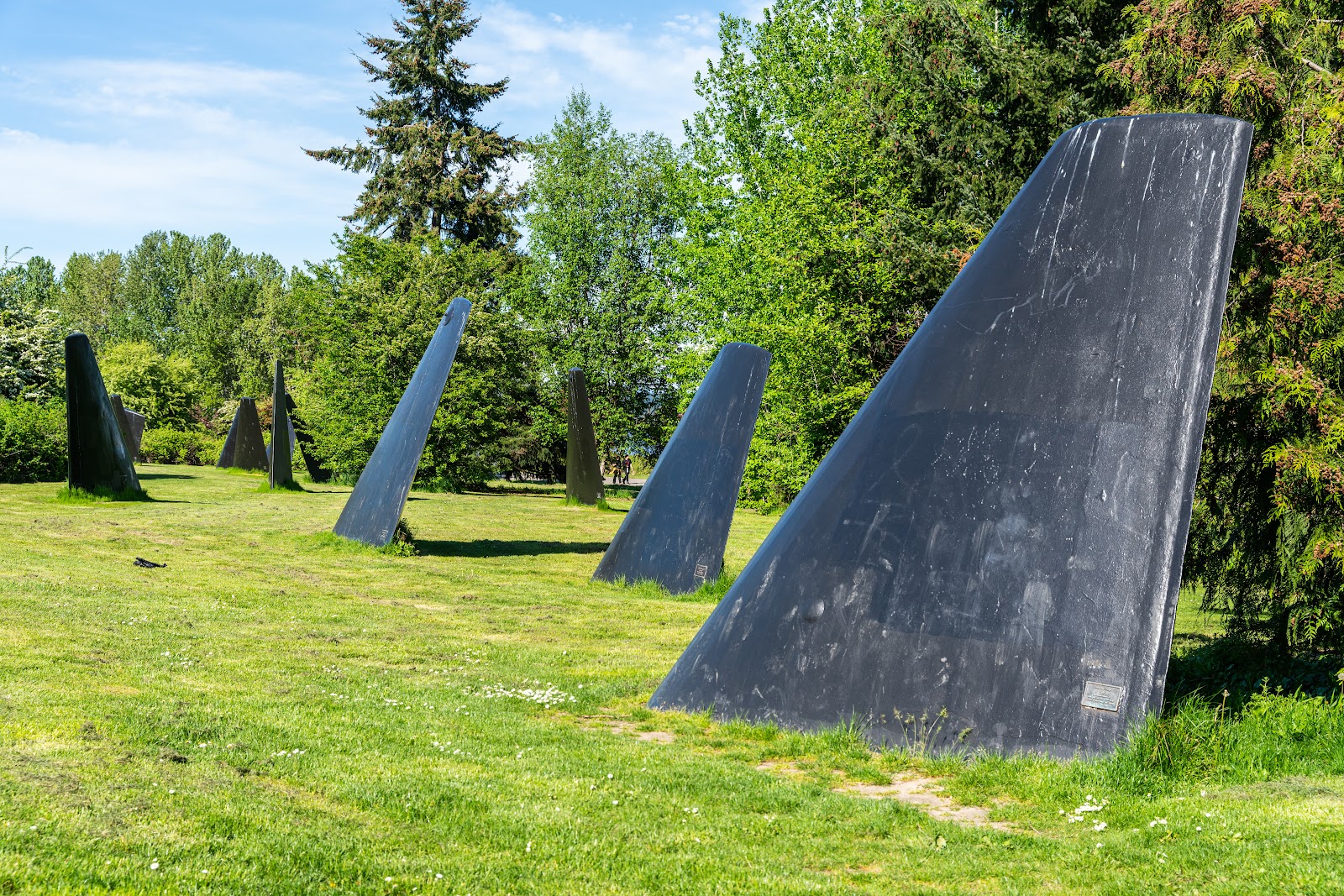 Art installation featuring a pod of Orca “fins” made from decommissioned Navy attack submarines.